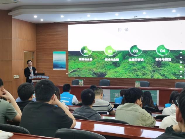 讲座伊始,冯骞老师以生动的语言向学生们介绍了“世界地球日”的由来和意义。他提到,地球是我们共同的家园,保护地球环境就是保护我们自己的生存空间。冯老师从天地人的和谐关系展开,引入儒家、佛家、道家等观念,为大家介绍从古至今人与自然的关系,告诉大家我们每个人都应该积极参与到环保行动中来,为地球的未来贡献自己的力量。