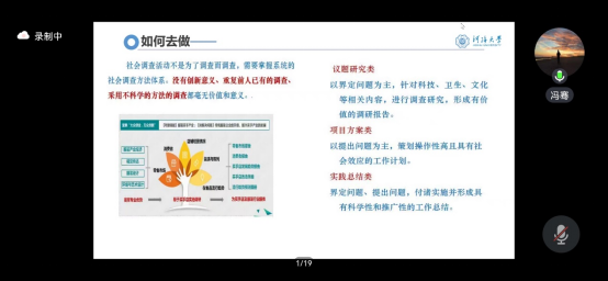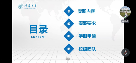 金意倩老师从实践内容、实践要求、学时申请和校级团队四个方面对暑期社会实践进行宏观介绍。她详细解读了暑期“三下乡”社会实践活动的相关文件,明确了暑期社会实践的方向与内容,介绍进行团队或个人社会实践的要求与后续学时申请的注意事项,为环境学子进行社会实践指明了总体方向。