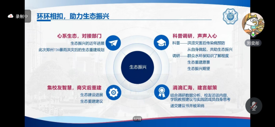 何辰瑞同学提出要积极贴合国家宏观导向,充分发挥老王论坛 水环境的专业特色进行调研实践,同时详细介绍了立项答辩应该选取的内容、实践过程中的注意事项以及成果的转化方向。