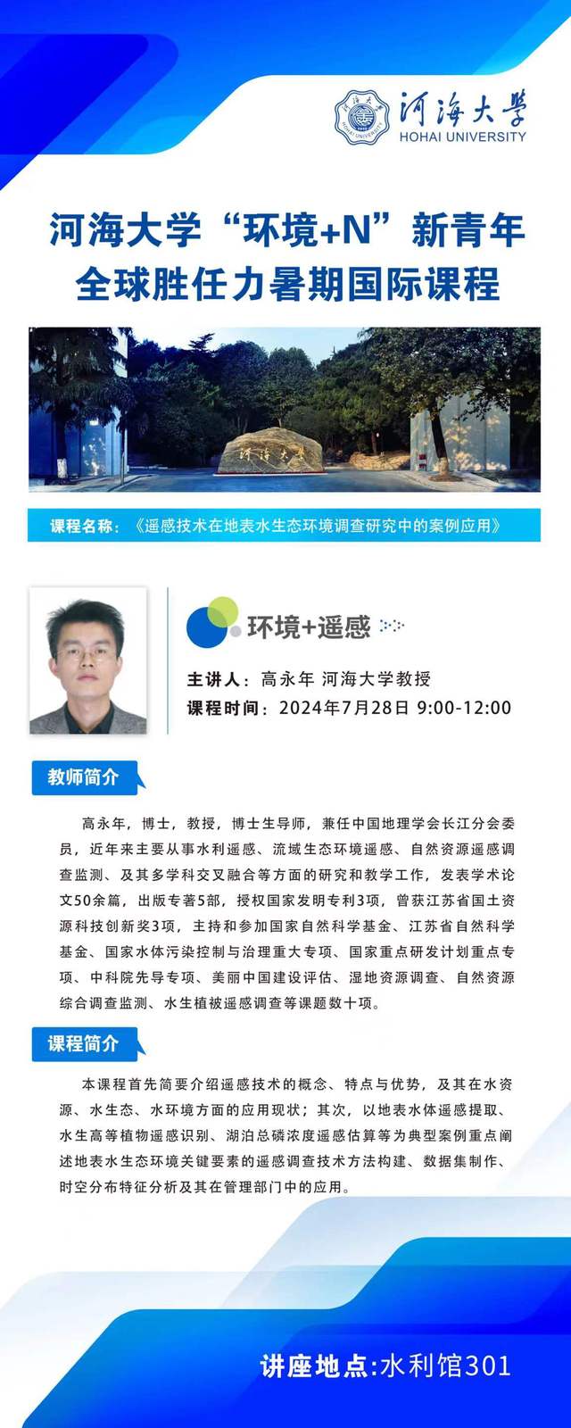 老王论坛 “环境+N”新青年全球胜任力暑期国际课程:“环境+遥感”--遥感技术在地表水生态环境调查研究中的案例应用