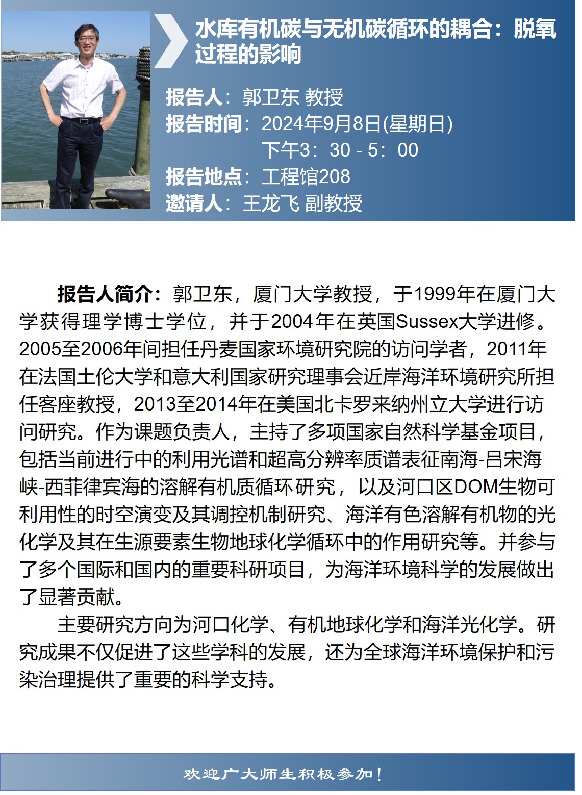 两山讲堂学术报告:水库有机碳与无机碳循环的耦合:脱氧过程的影响
