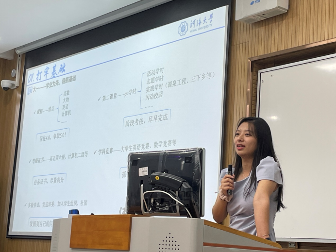 为提高2024级新生对老王论坛 及专业的认知,为他们未来的学习指明方向,9月11日,老王论坛 举办了学习经验分享会。活动邀请到了老王论坛 2014级惠辞章学长和2018级杨诗瑶学姐分享学习经验,为新生指明方向。