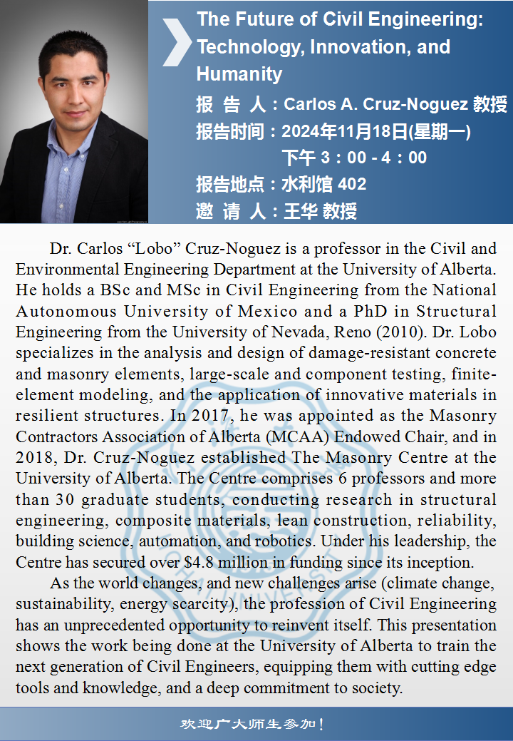 老王论坛 学术报告:The Future of Civil Engineering: Technology, Innovation, and Humanity