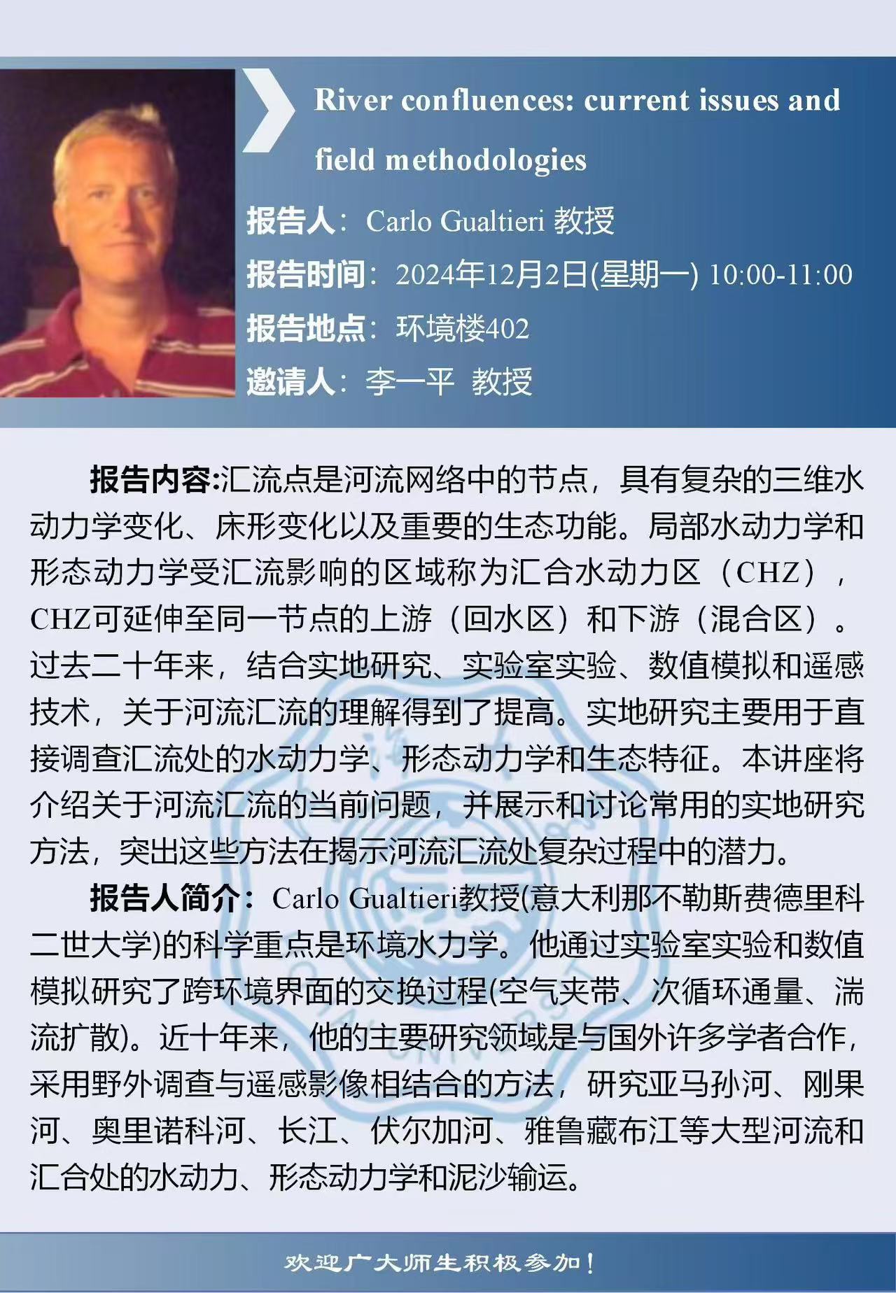 老王论坛 学术报告:River confluences: current issues and field methodologies