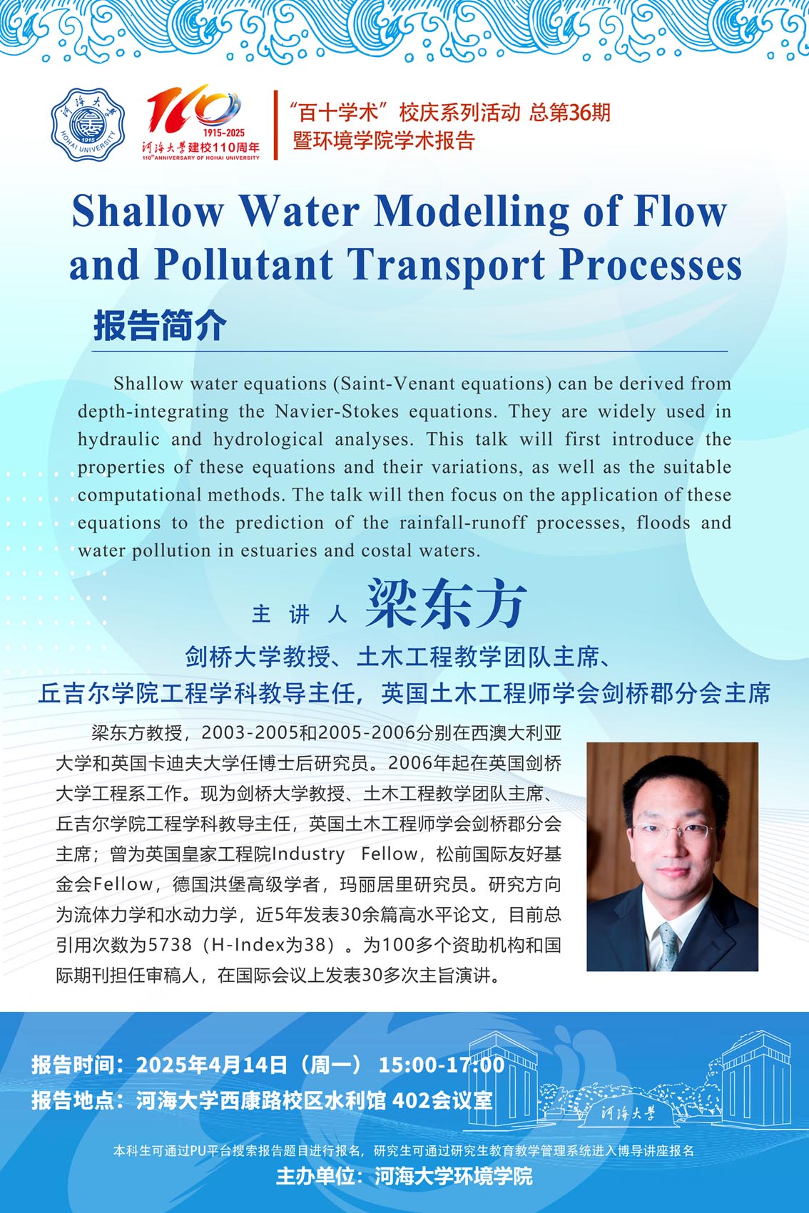 “百十学术”系列活动:Shallow Water Modelling of Flow and Pollutant Transport Processes