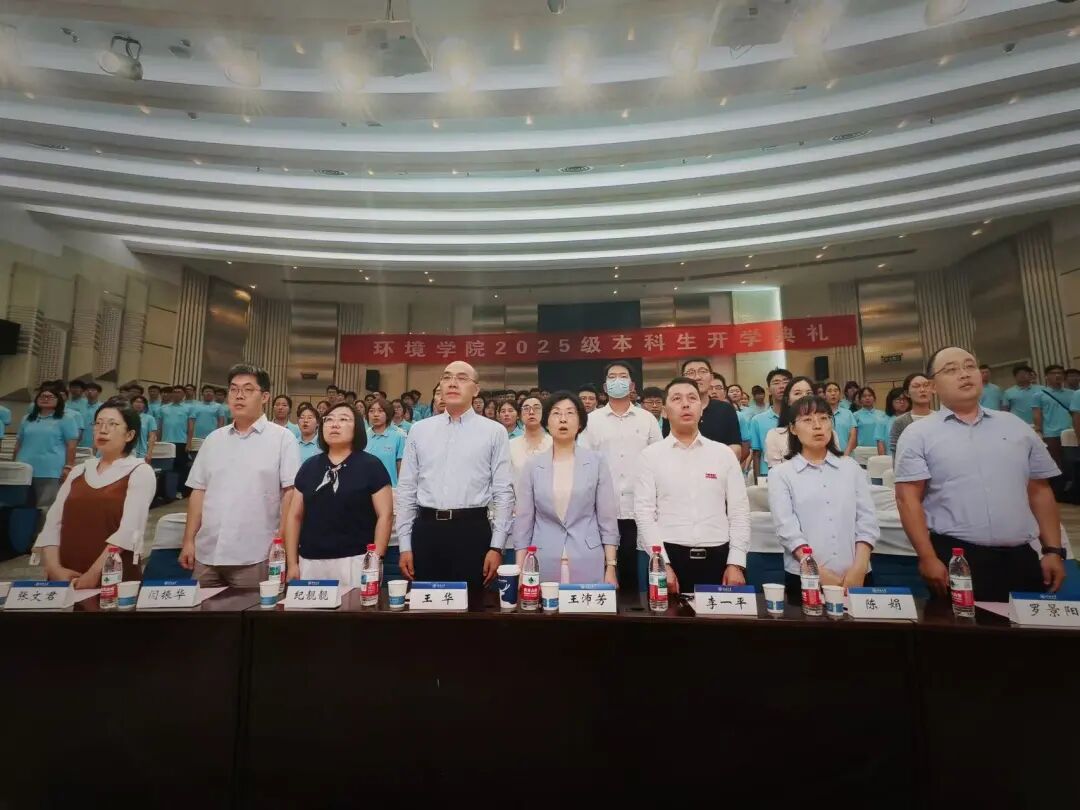 王沛芳书记向2025级新生表达了诚挚的祝贺与热烈的欢迎,并强调了一代代环境人“水利万物,海纳百川”的胸怀和“永立潮头,敢为人先”的环境人精神。她为同学们开启了大学的人生第一课,对2025级新生提出了三点期望:要志存高远,心怀国之伟大,重视国家生态文明;要勇于探索,练就过硬本领,希望同学们主动钻研,乐于投身实践;要修身立德,培养健全人格,用积极乐观的心态,努力成为言行一致、有责任感、有担当的新时代青年,为祖国的绿水青山贡献力量。