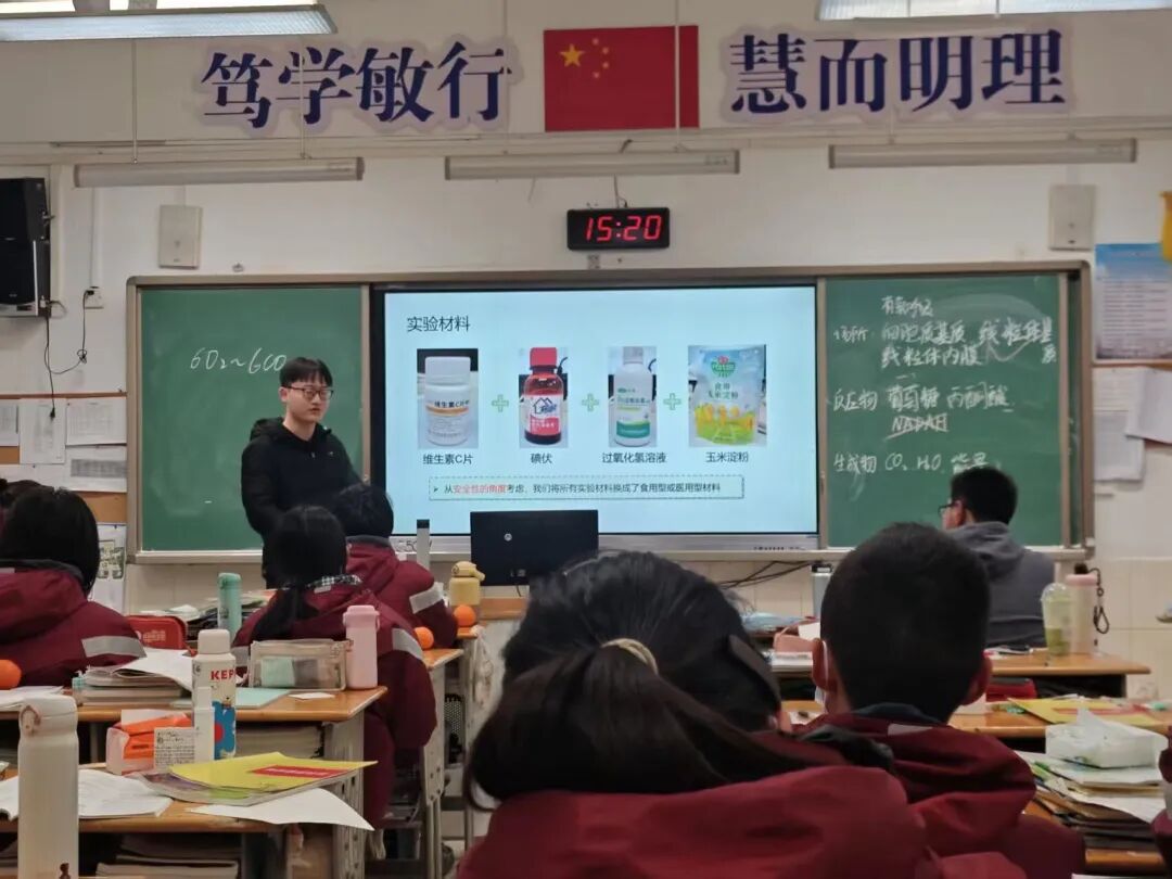 在最近的系列课程中,课堂变身为微型实验室。“湿地生态价值”课上,研究生团队指导中学生亲手搭建小型净化装置,模拟湿地过滤过程,让原本书本上抽象的“地球之肾”净化功能变得直观可见;而在气氛热烈的“碘钟反应”课上,同学们通过亲手调配试剂,直观感受化学反应变化的奇妙瞬间,体验科学探索的严谨与乐趣。